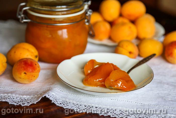 Абрикосы в сахарном сиропе, приготовленные по этому рецепту, получаются сочными и по вкусу больше напоминают абрикосовые дольки из компота, а не из варенья. Такое варенье особенно приятно будет поставить на стол, когда за окном уже будет зима.