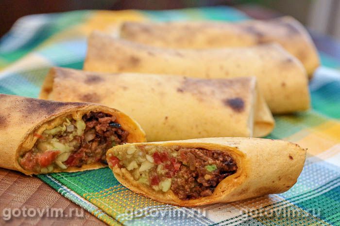 Буритто с мясным фаршем и гуакамоле. Рецепт с фото