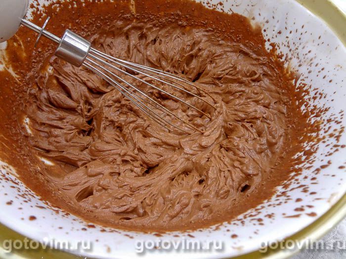 Совет: Во время взбивания шоколадная смесь довольно интенсивно разбрызгивается, поэтому если вы хотите, чтобы ваша кухня осталась чистой, есть смысл взять посуду поглубже. Загустевший мусс перекладываем в чашки или креманки, украшаем и присыпаем сверху по желанию — орешками, сладкой разноцветной посыпкой или взбитыми сливками.