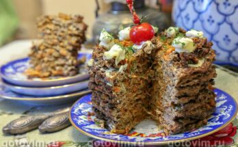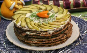 Печеночный торт с чесночным соусом. Рецепт с фото