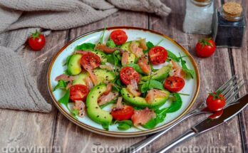 Салат со слабосолёной горбушей, авокадо и помидорами черри. Рецепт с фото