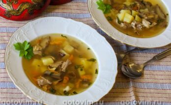 Мясной суп с картофелем и солеными грибами. Рецепт с фото