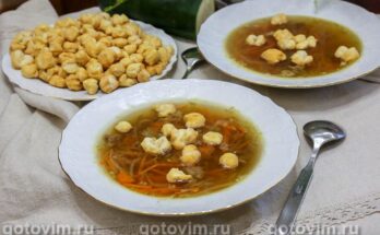 Говяжий бульон с овощами и жареными клецками. Рецепт с фото