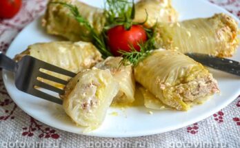 Овощные блюдаГолубцы из пекинской капусты с фаршем и гречкой в томатно-сметанном соусе. Рецепт с фото