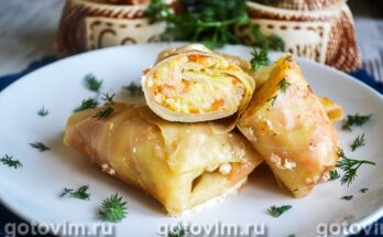 Овощные блюдаГолубцы из пекинской капусты с фаршем и гречкой в томатно-сметанном соусе. Рецепт с фото