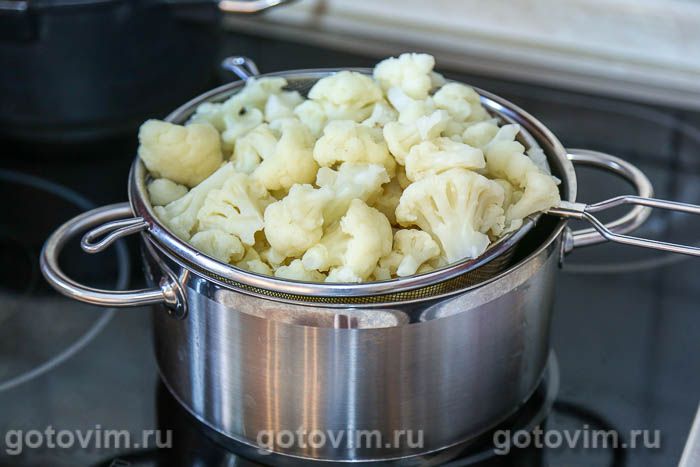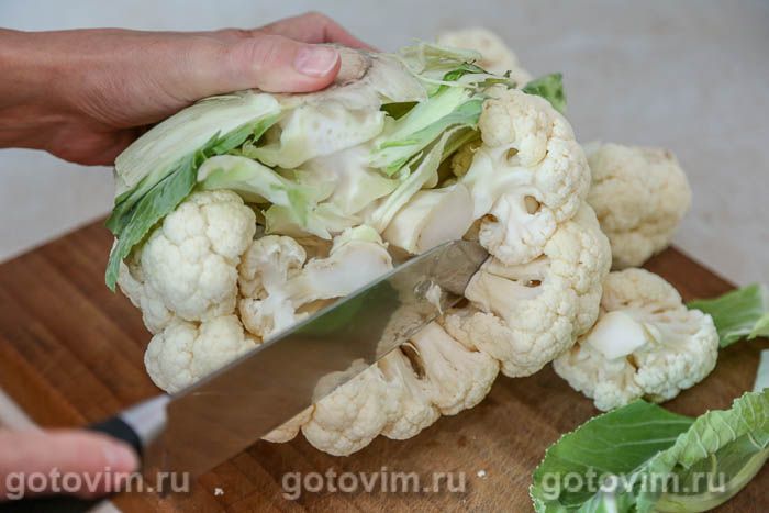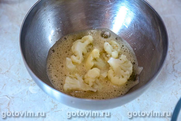 Цветную капусту разобрать на небольшие соцветия.