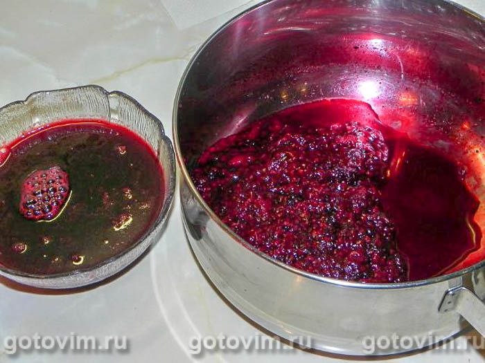 Сцедим образовавшуюся жидкость. Её можно употребить как компот. Миксером превращаем ягоды в однородное пюре.