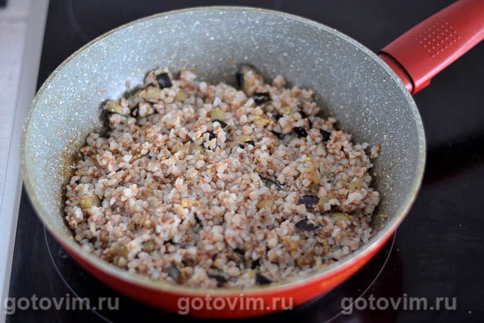 К баклажанам добавляем вареную гречку.