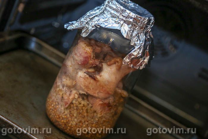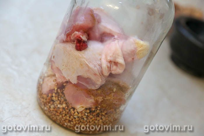 Гречка с курицей в банке в духовке. Рецепт с фото