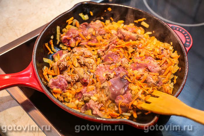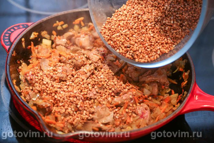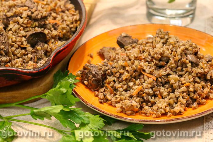Гречка с куриной печенкой в сквороде. Рецепт с фото
