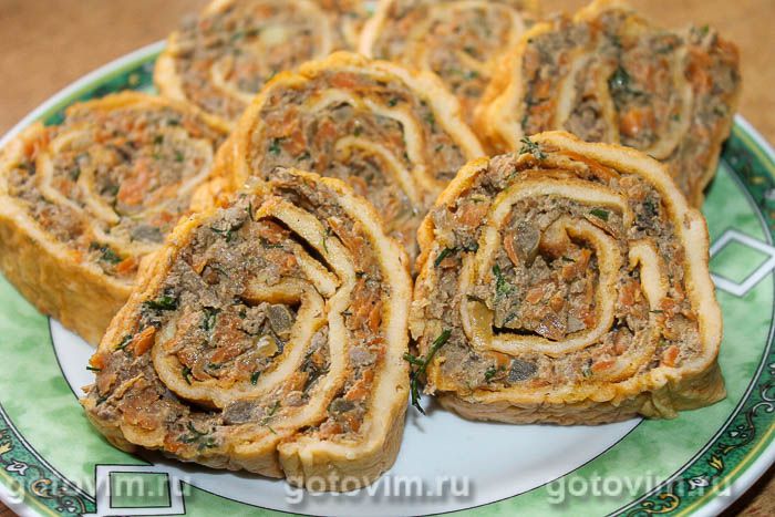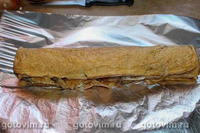 Яичный рулет с печёночной начинкой. Рецепт с фото