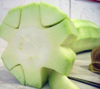 С помощью ножа или согнутой крышки от консервов вырезаем бороздки. Нарезаем дольками.