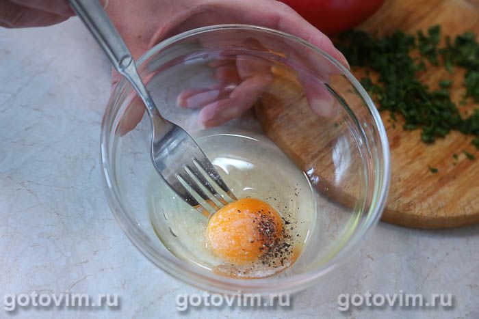 Сырое яйцо посолить и размешать вилкой.