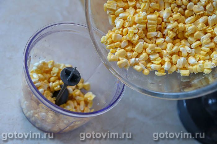 Сырые зерна кукурузы пересыпать в блендер и пробить в кашу.