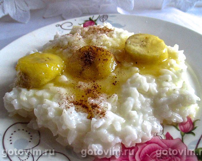 Каша рисовая с бананами в карамели. Рецепт с фото