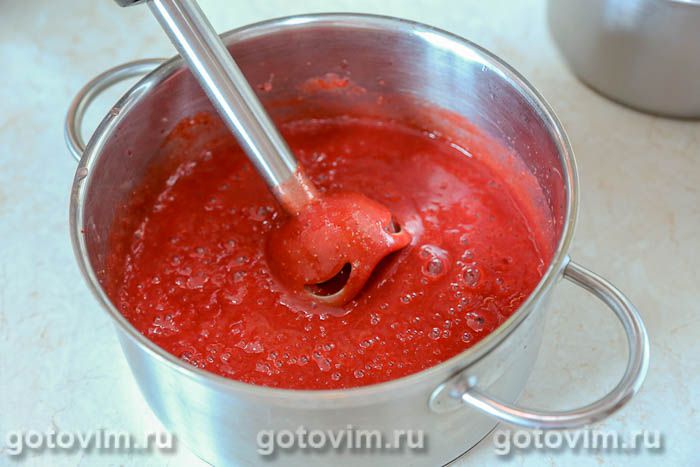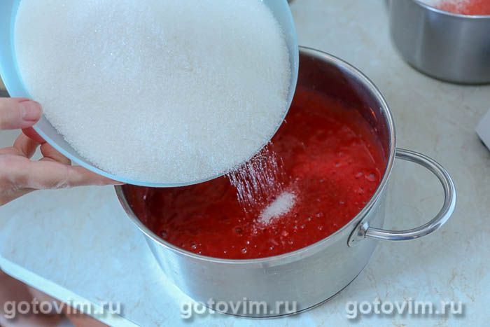 На следующий день поставить кастрюлю с пюре на небольшой огонь, дождаться, когда варенье закипит, и варить, постоянно помешивая и удаляя пену примерно 1 час.