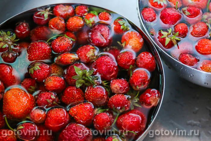 Клубнику перебрать, промыть и откинуть на дуршлаг, чтобы максимально удалить лишнюю влагу.