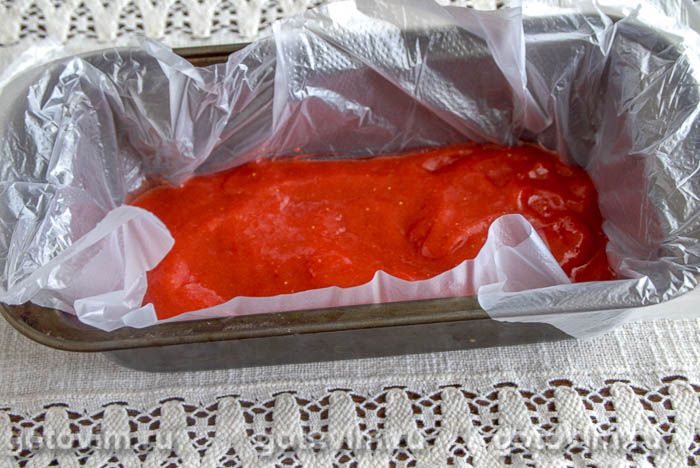 Выкладываем десерт в форму, застеленную пищевой пленкой и охлаждаем 3-4 часа.