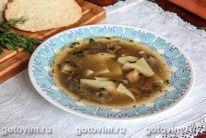В куриный суп с грибами можно добавить готовые галушки или лапшу, после чего проварить пару минут для готовности теста. Если у вас будет свободное время, то галушки можно быстро слепить, замесив тесто на воде. Грибы для супа лучше брать замороженные лесные, но и с шампиньонами и вешенками получается неплохо.