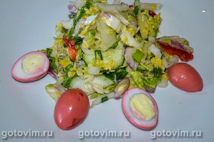 Перепелиные яйца, несмотря на миниатюрность, вполне могут заменить куриные в любом салате. Если замариновать яйца перепелов в свекольном маринаде, то можно получить очень красивую и вкусную закуску. Кроме того, их хорошо использовать для украшения салатов, закусок — канапе и в качестве начинок для тарталеток.