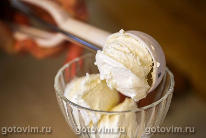 Если есть ложка для мороженого, то вы везунчик. Разложите в креманки шарики готового мороженого.