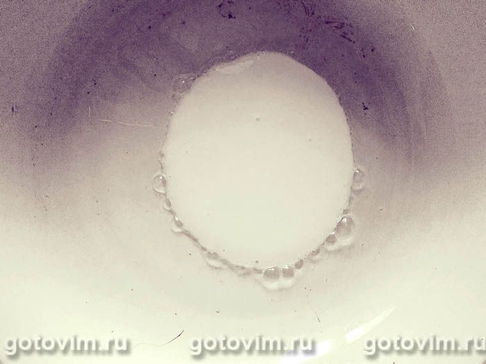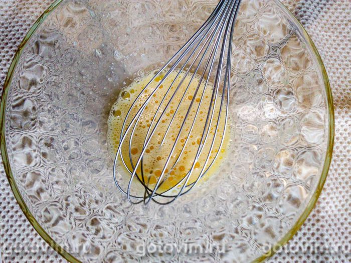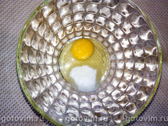 Яйцо растереть венчиком с сахарным песком до полного растворения кристаллов.