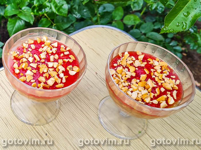 Украсить готовую пана котту рублеными орехами. Десерт из ореховой пасты с клубникой готов к подаче. Приятного аппетита!