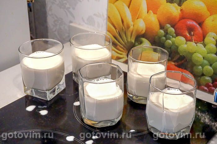 Получившуюся сливочную смесь разлить по стаканам, оставляя место для желе из красных апельсинов. Поставить стаканы со сливочной смесью в холодильник на 1,5-2 часа до полного застывания.