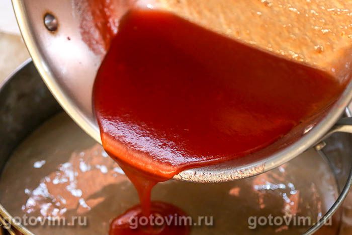 Подготовить лоток (или противень), на котором будете сушить калиновую пастилу. Застелить его бумагой для выпечки и смазать растительным маслом. Распределить калиновое пюре слоем около 5 мм, разровняв шпателем (или лопаточкой). Слой пюре должен быть 5 мм: если сделаете тоньше — будет сложнее отделять её от листа, если толще — пастила будет дольше сушиться.