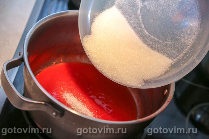 Вернуть кастрюлю с ягодным пюре на плиту. Поставить на огонь и довести до кипения. Уменьшить огонь до минимального и варить, помешивая, пока пюре не загустеет.