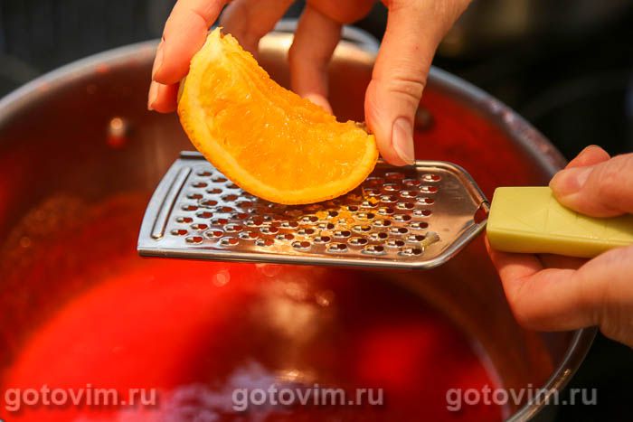 Апельсин вымыть. Для удобства разрезать на 4 части. Теркой снять с апельсина цедру и добавить в пюре.