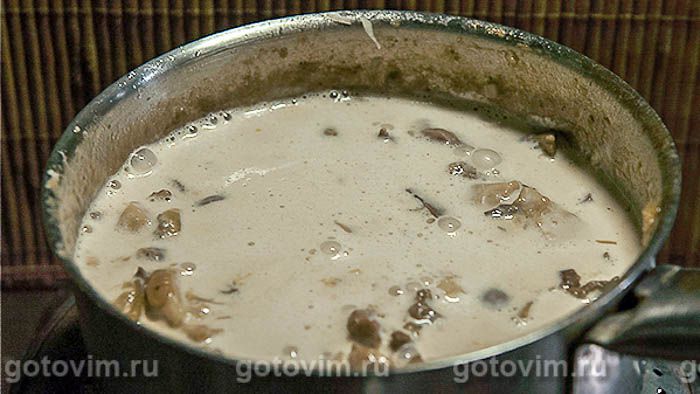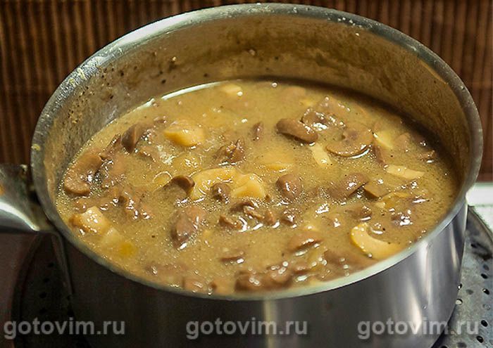 Смешав с почками и залив бульоном, ставим тушить на рассекатель.