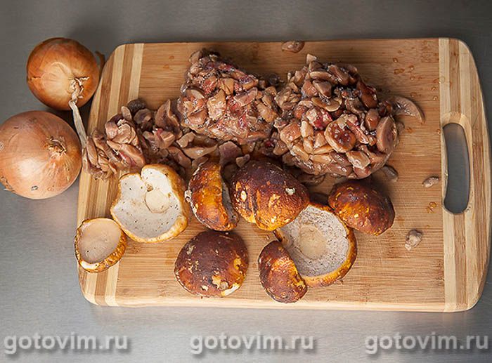 Подготовленные почки и грибы.