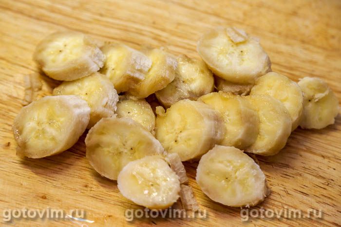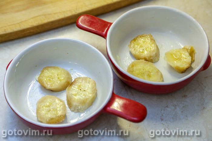 Порционные формочки смазать сливочным масло, уложить в каждую по 3-5 (в зависимости от размера) кружочков банана.