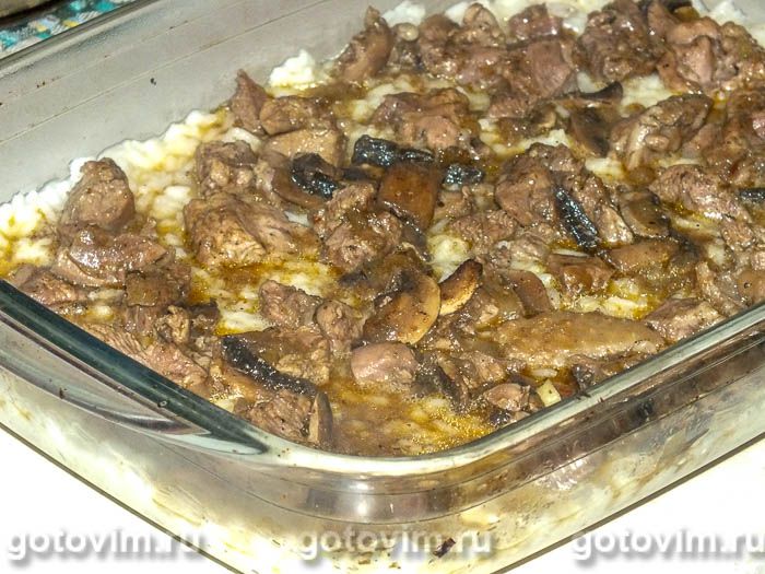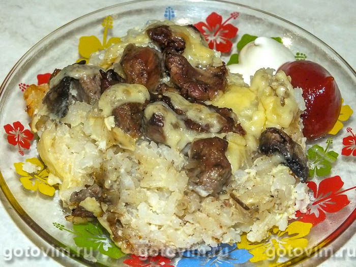Рисовая запеканка с грибами и мясом индейки. Рецепт с фото