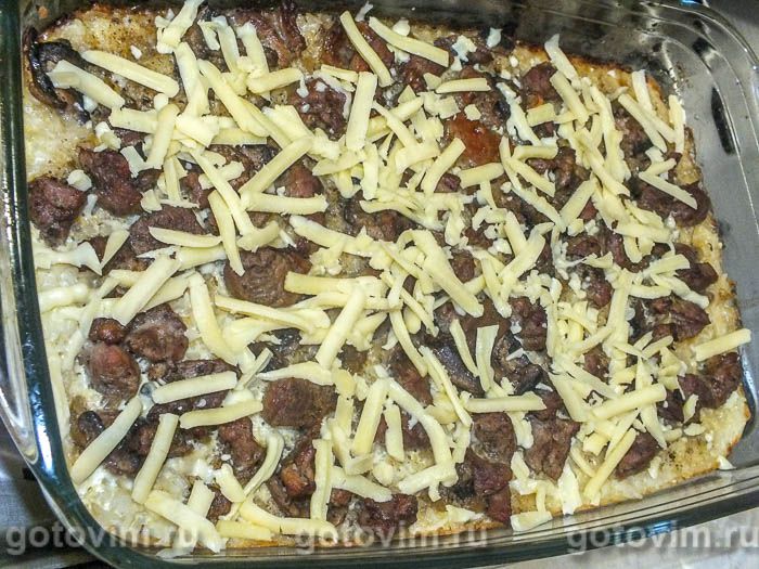 Затем распределяем по поверхности запеканки тертый сыр, ставим в духовку на 7 минут. Рисовая запеканка с грибами и мясом индейки готова. Приятного аппетита!