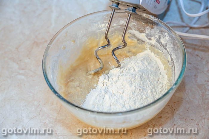 Миску с тестом накрыть пленой и оставить для расстойки на 1 час или более. Оно должно увеличиться в объеме в 2-2.5 раза.