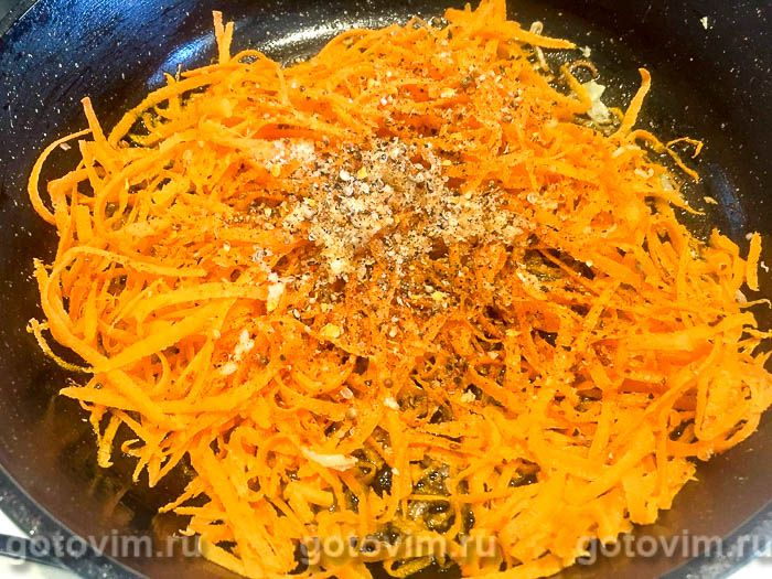 Сделать «морковь по-корейски» быстрым способом: натереть корнеплод соломкой на специальной терке