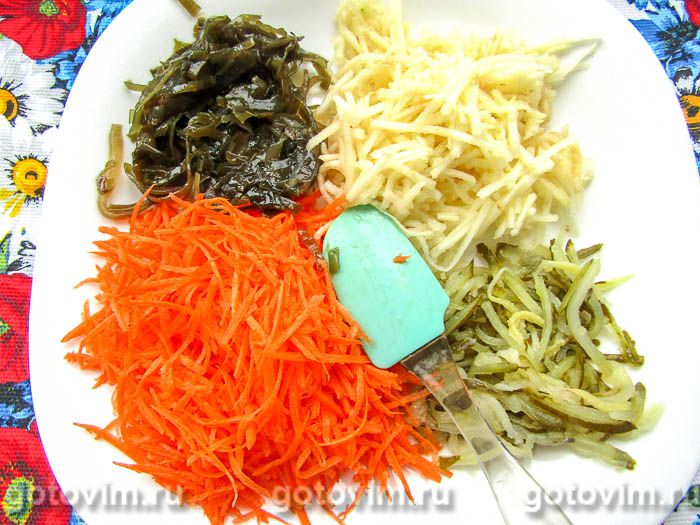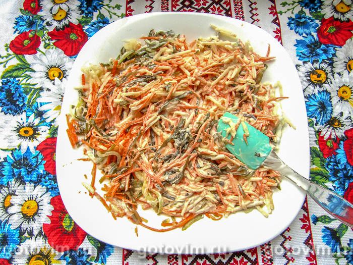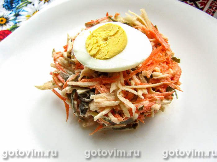 Салат из морской капусты с яйцом, огурцом, морковью и яблоками. Рецепт с фото