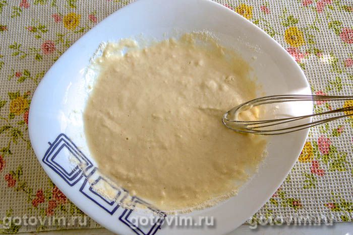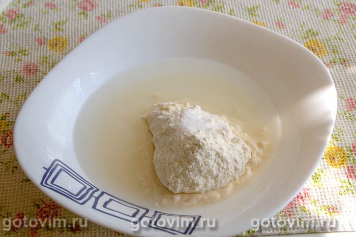 Делаем кляр из соли, муки и воды. Количество воды регулируем в зависимости от качества муки. Кляр по своей консистенции должен напоминать сметану.