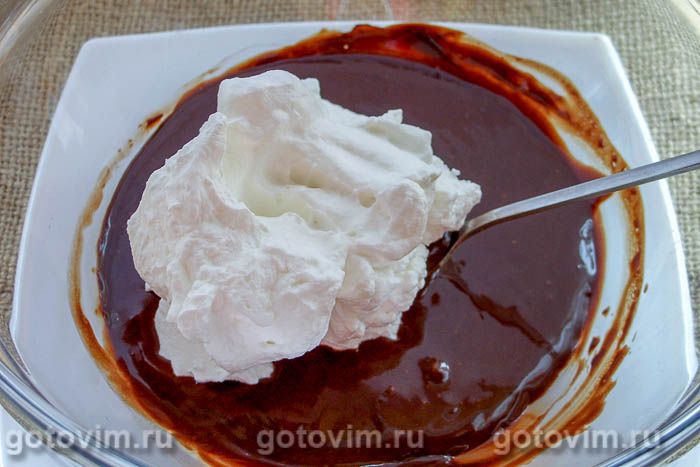 Таким же образом, по частям ввести и остальные взбитые сливки. Можно оставить немного для украшения.