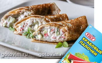 Блины с крабовыми палочками VICI, огурцом и сыром. Рецепт с фото