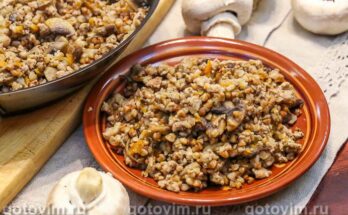 Гречка с фаршем и грибами на сковороде. Рецепт с фото