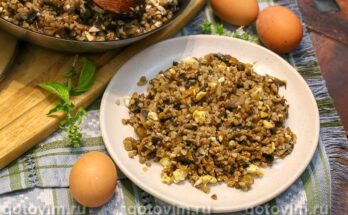 Гречка с грибами и вареным яйцом на сковороде. Рецепт с фото