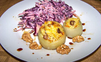 Лук, фаршированный пшенной кашей с мясом и салом. Рецепт с фото