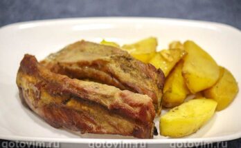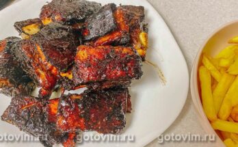 Мясные блюдаГовяжьи ребрышки, запеченные под маринадом из яблок, кетчупа, соевого соуса и меда. Рецепт с фото