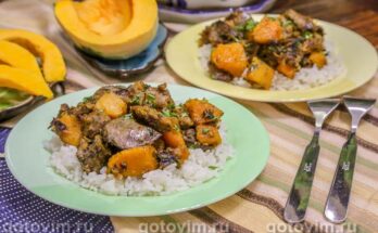 Куриная печень, жаренная с тыквой. Рецепт с фото