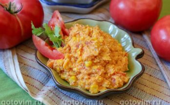 Каша из свежей кукурузы с помидорами и яйцом. Рецепт с фото