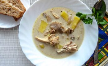Сливочный суп с кроликом и сушеными белыми грибами. Рецепт с фото