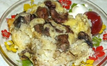Рисовая запеканка с грибами и мясом индейки. Рецепт с фото